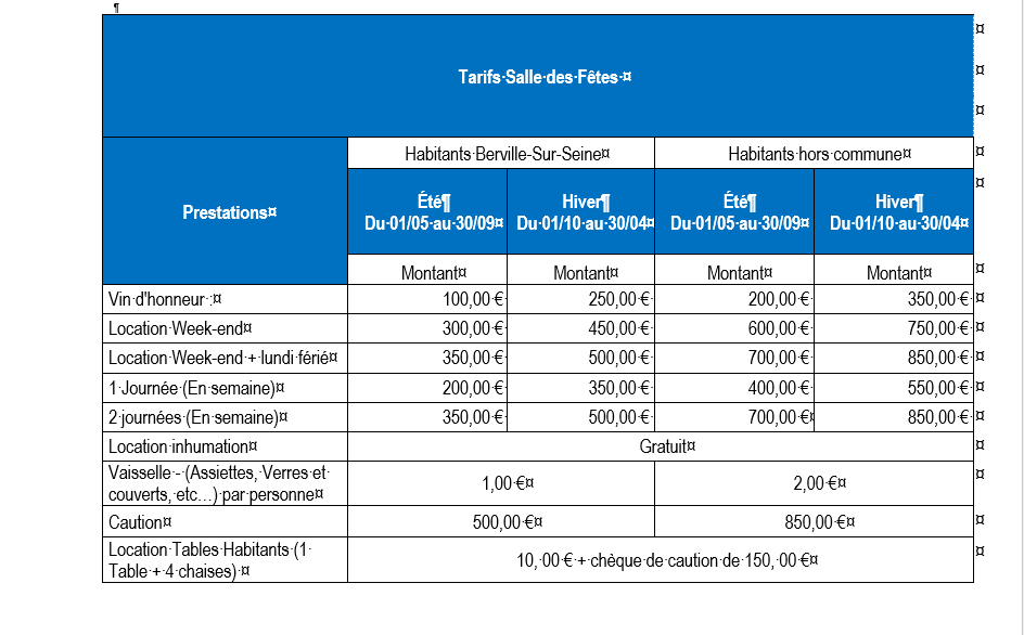 La salle ne peut pas être louée pendant les mois de juillet et août.